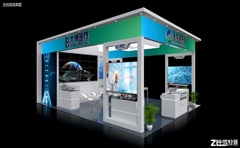 主要材料:木板、方鋼地臺、LED軟膜燈箱、亞克力片、LED燈、玻璃展柜、考漆。