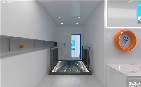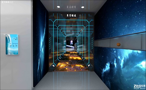 利用投影儀將精美絕 倫的動(dòng)畫(huà)及幾十款互動(dòng)游 戲投影到地面,在具有觀 賞性的同時(shí)兼具可玩性, 兩側(cè)墻壁利用玻璃反射及 延展性燈帶產(chǎn)生更好的視 覺(jué)效果。