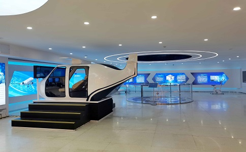 采用160°水平視角環(huán)幕, 24㎡超大觀影體驗(yàn),支持300萬(wàn) 面超大規(guī)模虛擬現(xiàn)實(shí)場(chǎng)景實(shí)時(shí) 漫游,4160*1440 屏幕分辨率 高清數(shù)字媒體播放。墻上展現(xiàn) 了紫薇花飛船的編年史,增加 科技感。