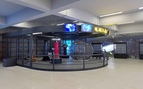 電磁大舞臺(tái)主要有雅各布天梯、 怒發(fā)沖冠、沿面放電等項(xiàng)目,結(jié)合 了聲光電的立體空間感和舞臺(tái)劇的 炫麗感,營(yíng)造出一個(gè)神奇的科學(xué)氛 圍。這一系列有驚無(wú)險(xiǎn)的電磁現(xiàn)象 將著名科學(xué)家富蘭克林、法拉第、 特斯拉等人的歷史性經(jīng)典實(shí)驗(yàn)加以 生動(dòng)再現(xiàn)。